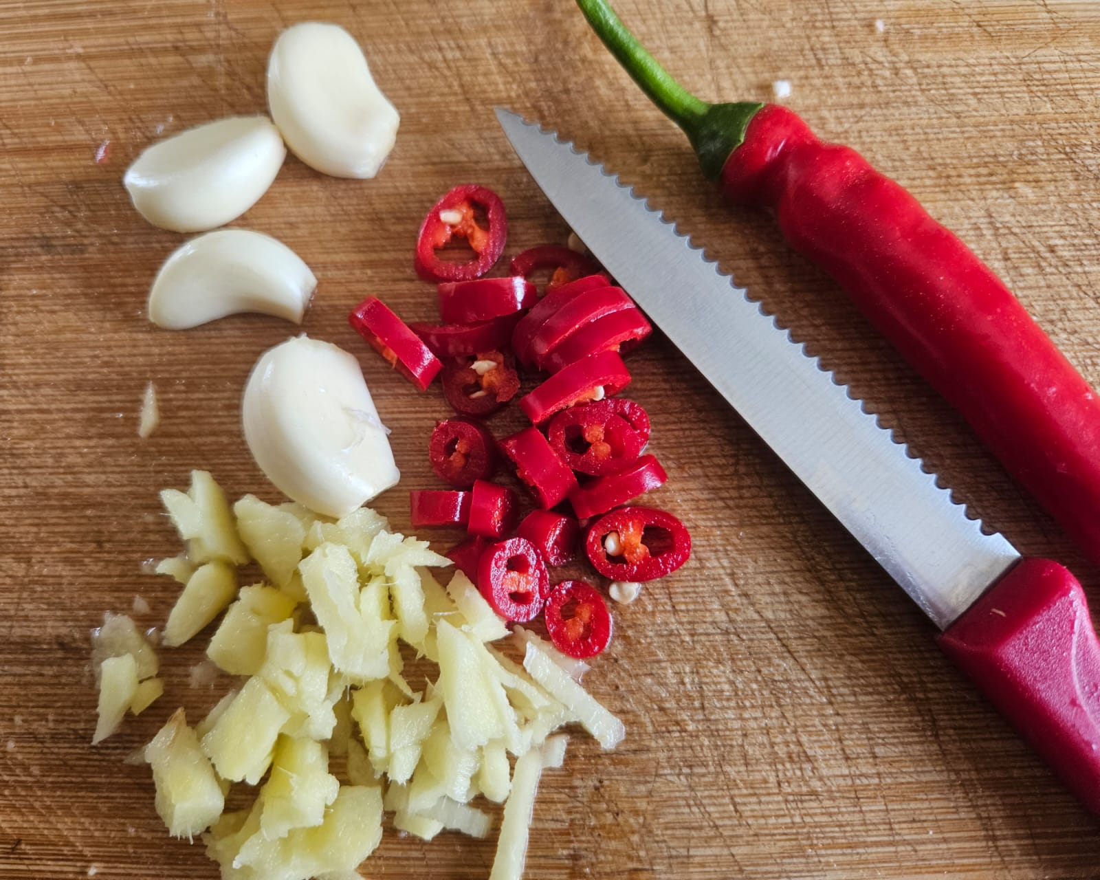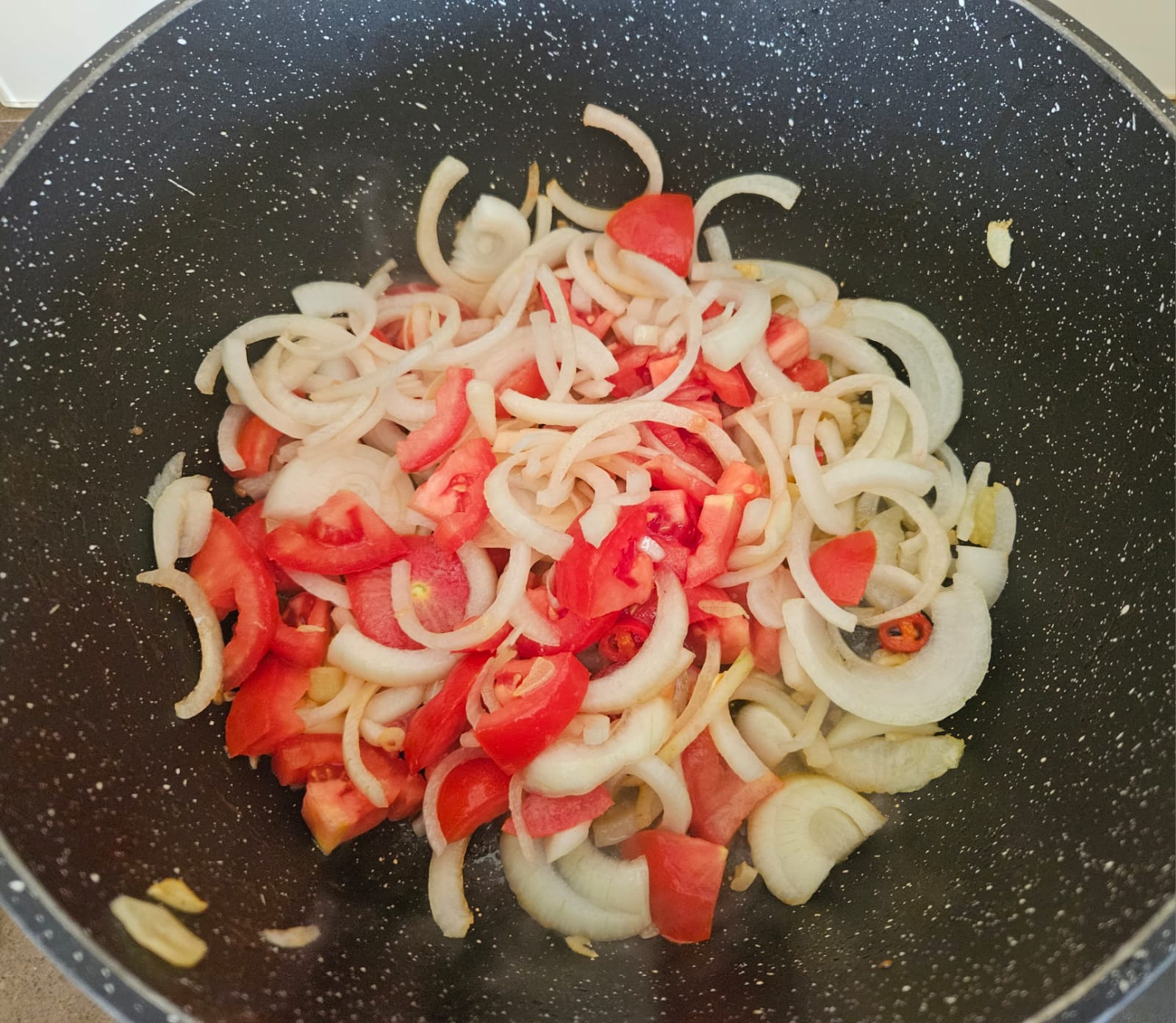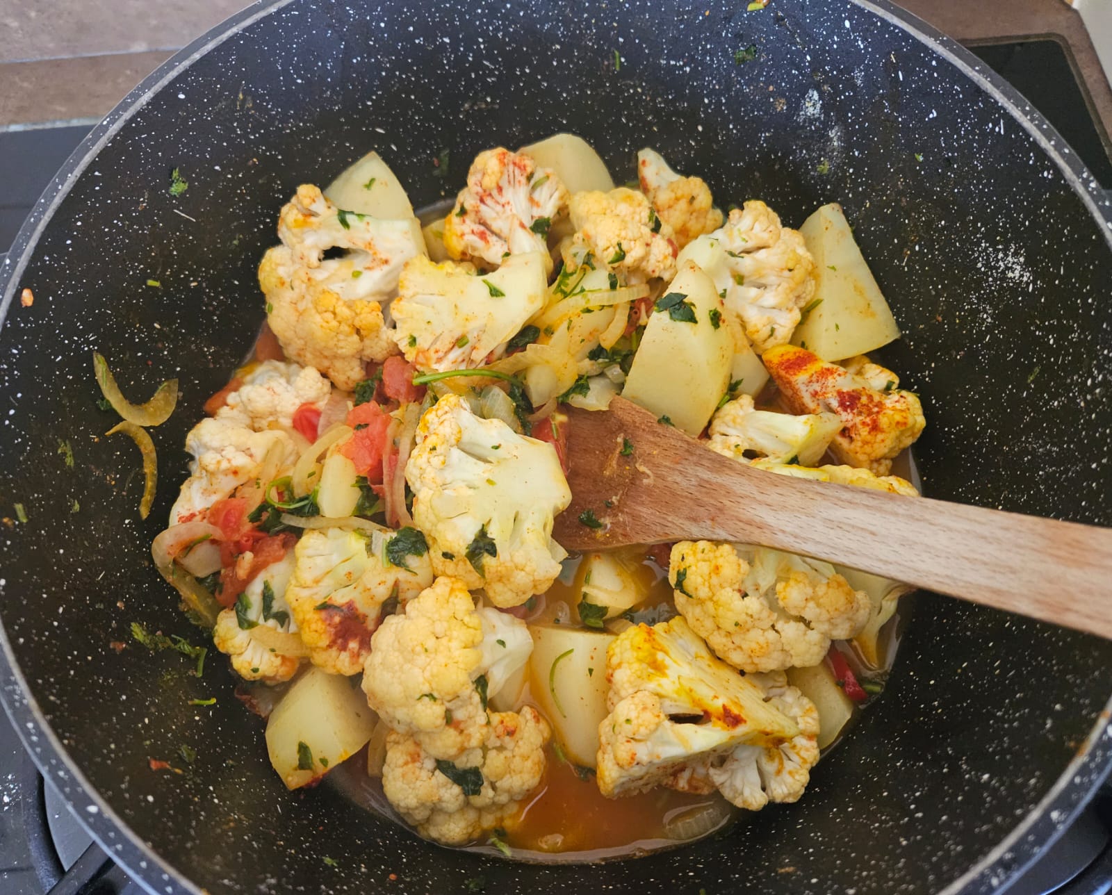 מעבירים את התבשיל לצלחת הגשה, מקשטים עם הכוסברה הטרייה ומגישים מיד.